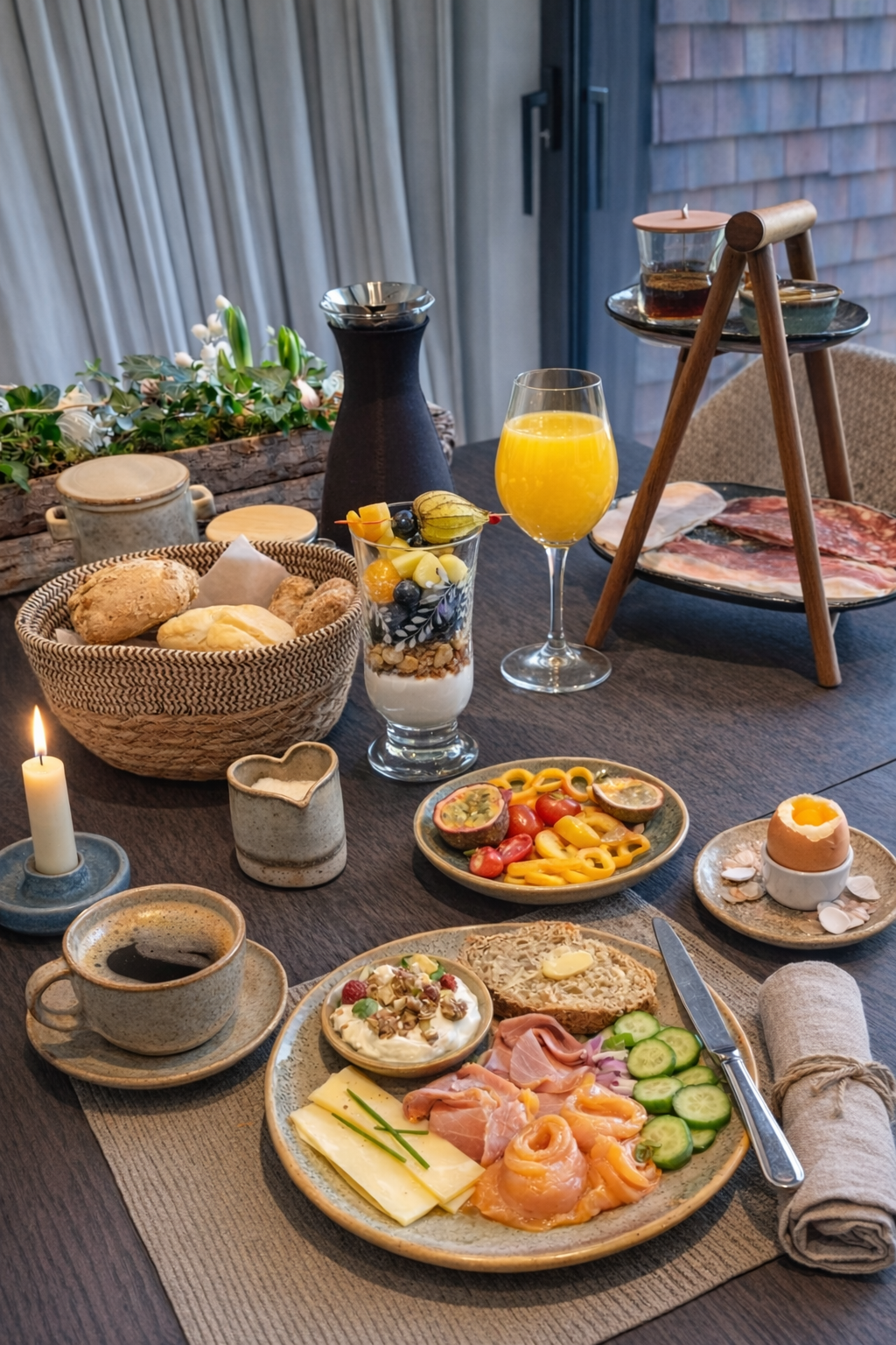 Begin je dag stevig met een uitgebreide selectie van lokale, plukverse en seizoensgebonden ingrediënten. Voor het kaasplankje werken we samen met een coöperatieve kaasmakerij uit het Gentse.